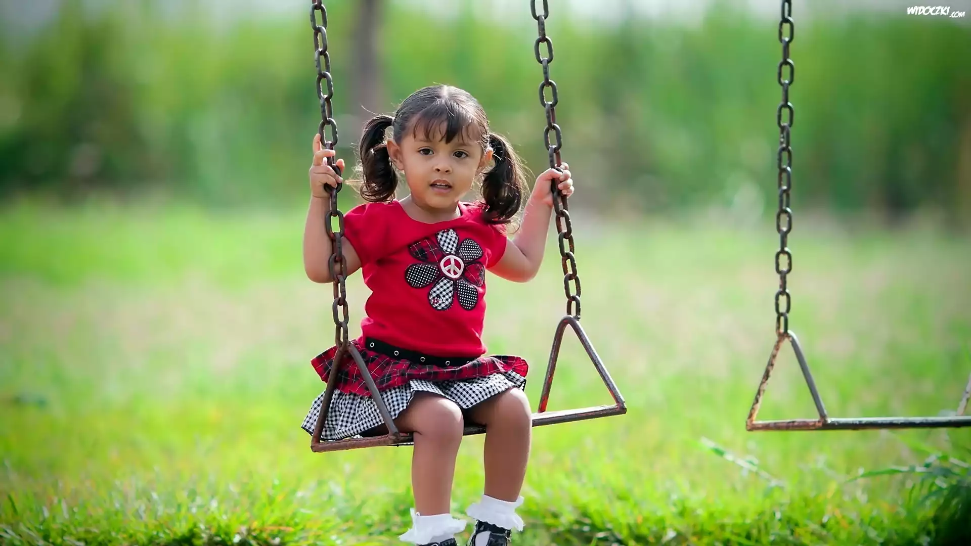 Zdjęcia, Dziewczynka, Huśtawka, Trawnik, Rozmycie