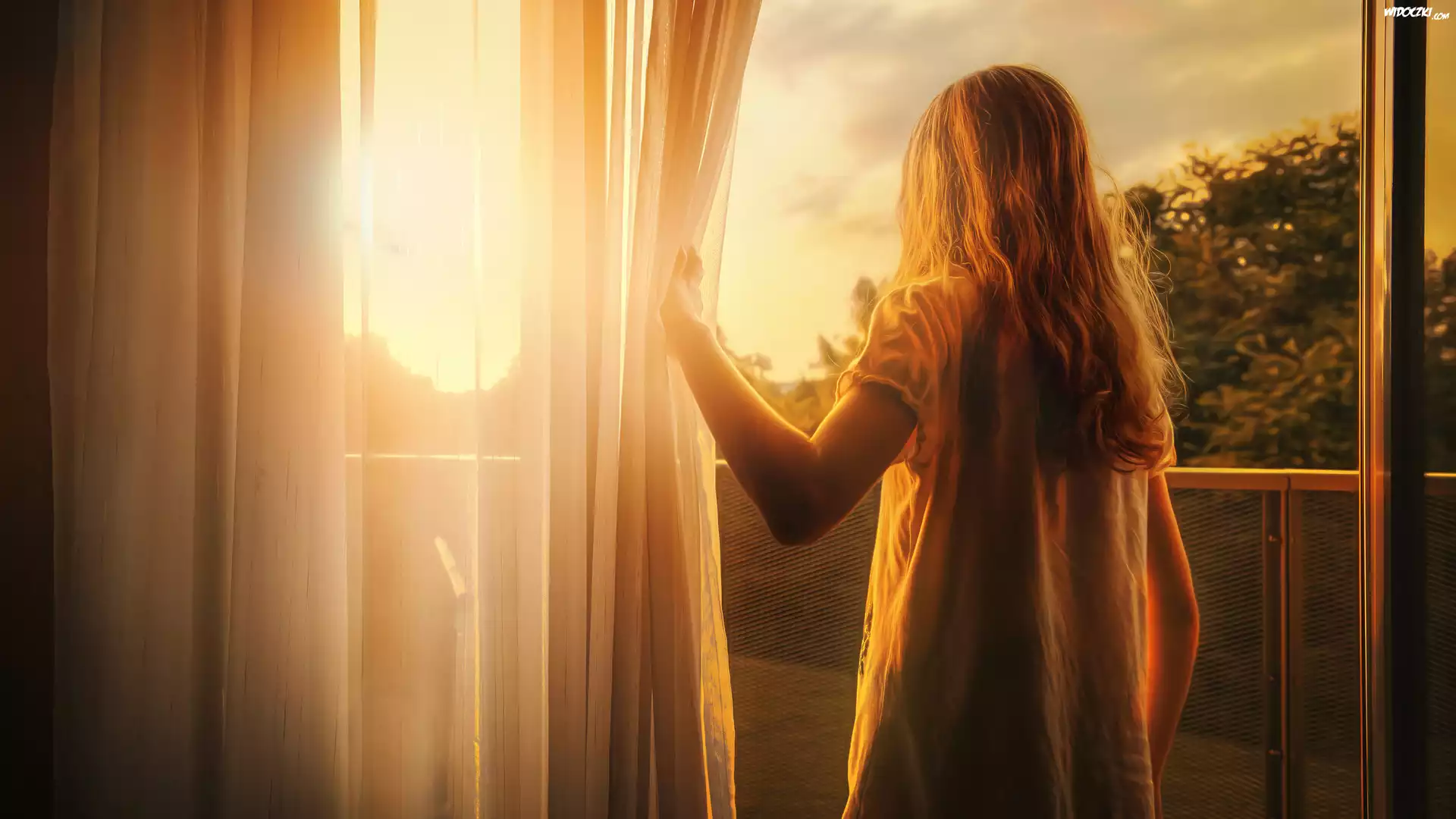 Dziewczynka, Balkon, Wschód Słońca