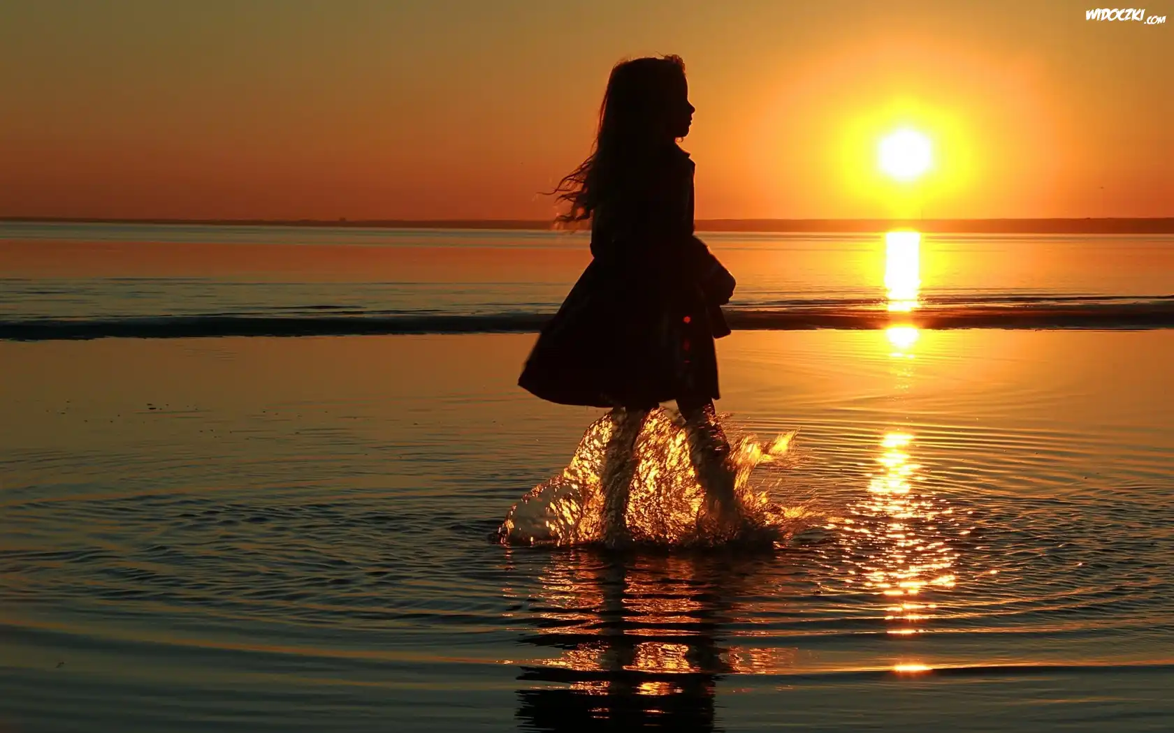 Zdjęcia, Dziewczynka, Jezioro, Zachód, Słońca