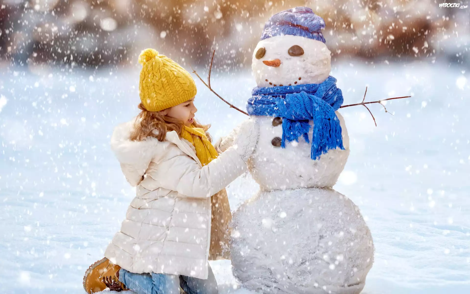 Zima, Dziewczynka, Bałwan