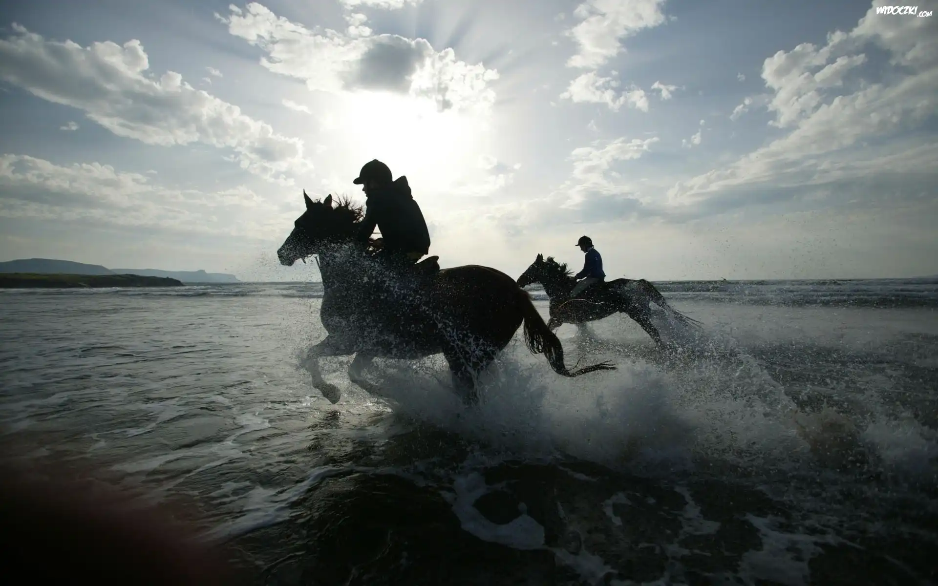 Konie, Dżokeje, Morze