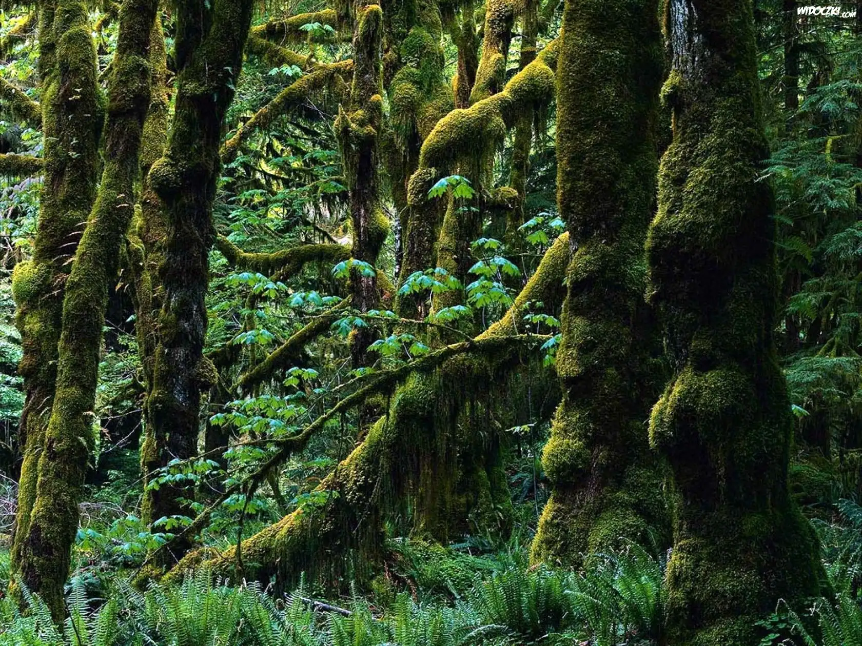 Dżungla, Omszałe, Drzewa, Paprocie
