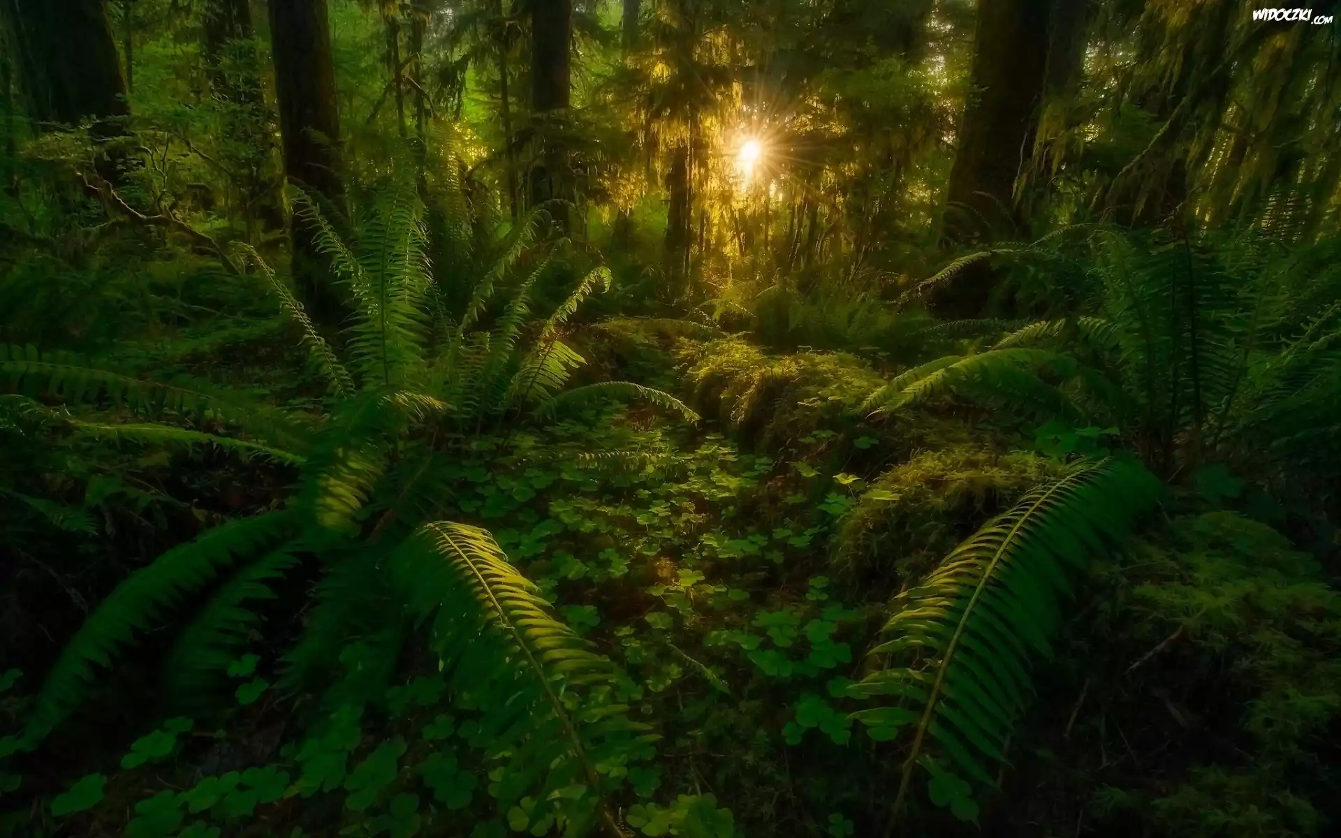 Zdjęcia, Dżungla, Paprocie, Promienie, Słońca