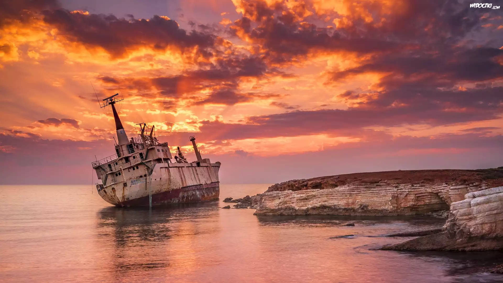 Zdjęcia, Statek Edro III, Wrak, Morze, Zachód słońca