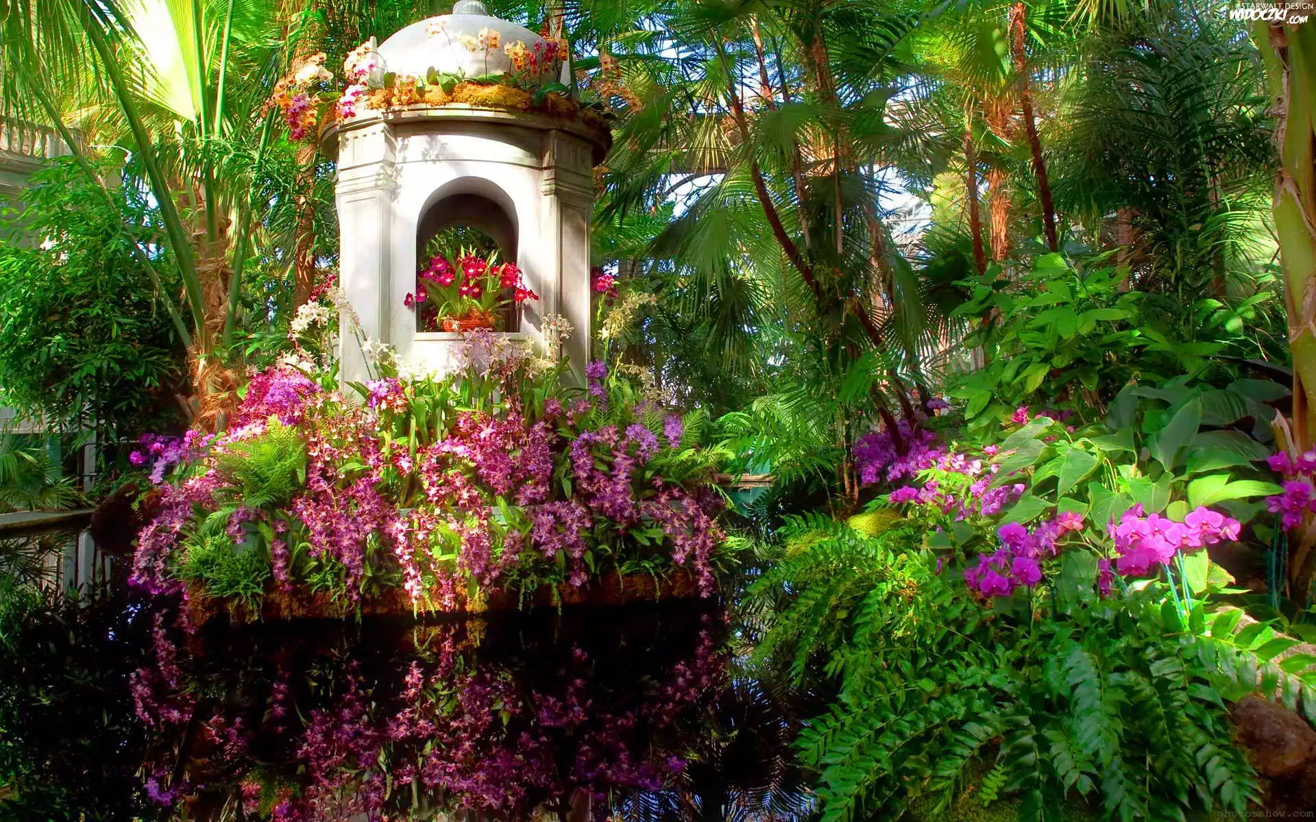 Egzotyczny, Ogród, Pawilon, Odbicie
