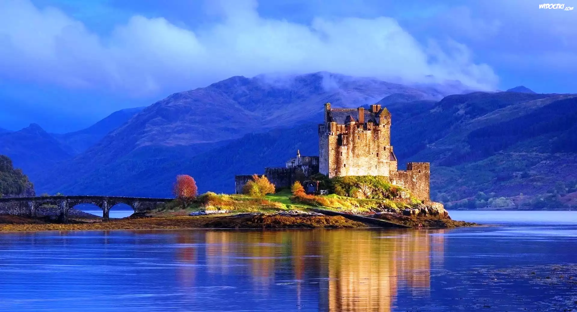 Zdjęcia, Zamek, Eilean Donan, Most, Góry, Woda, Szkocja