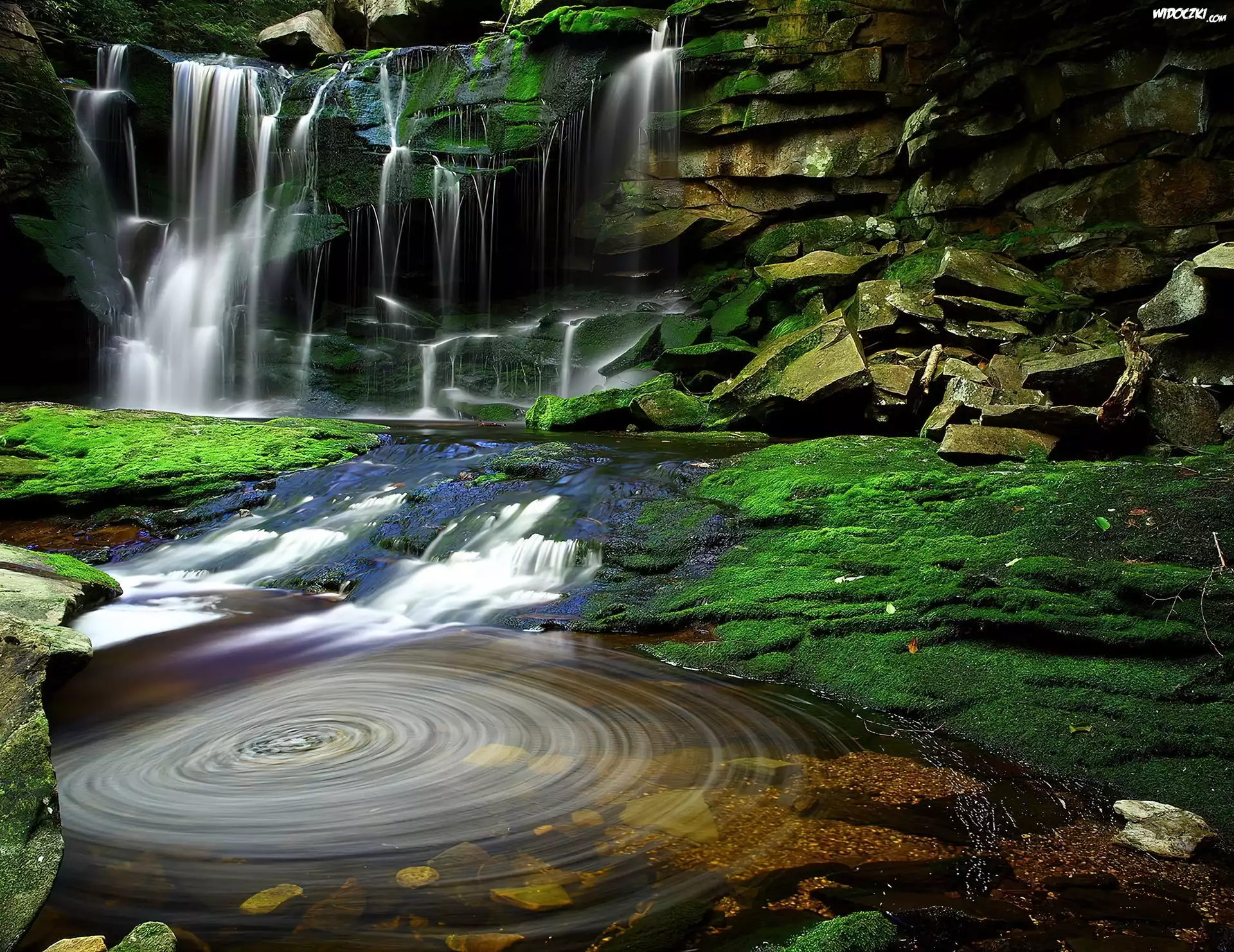 Zdjęcia, Elakala, Virginia, Wodospad, Rzeka, Skały, Zieleń