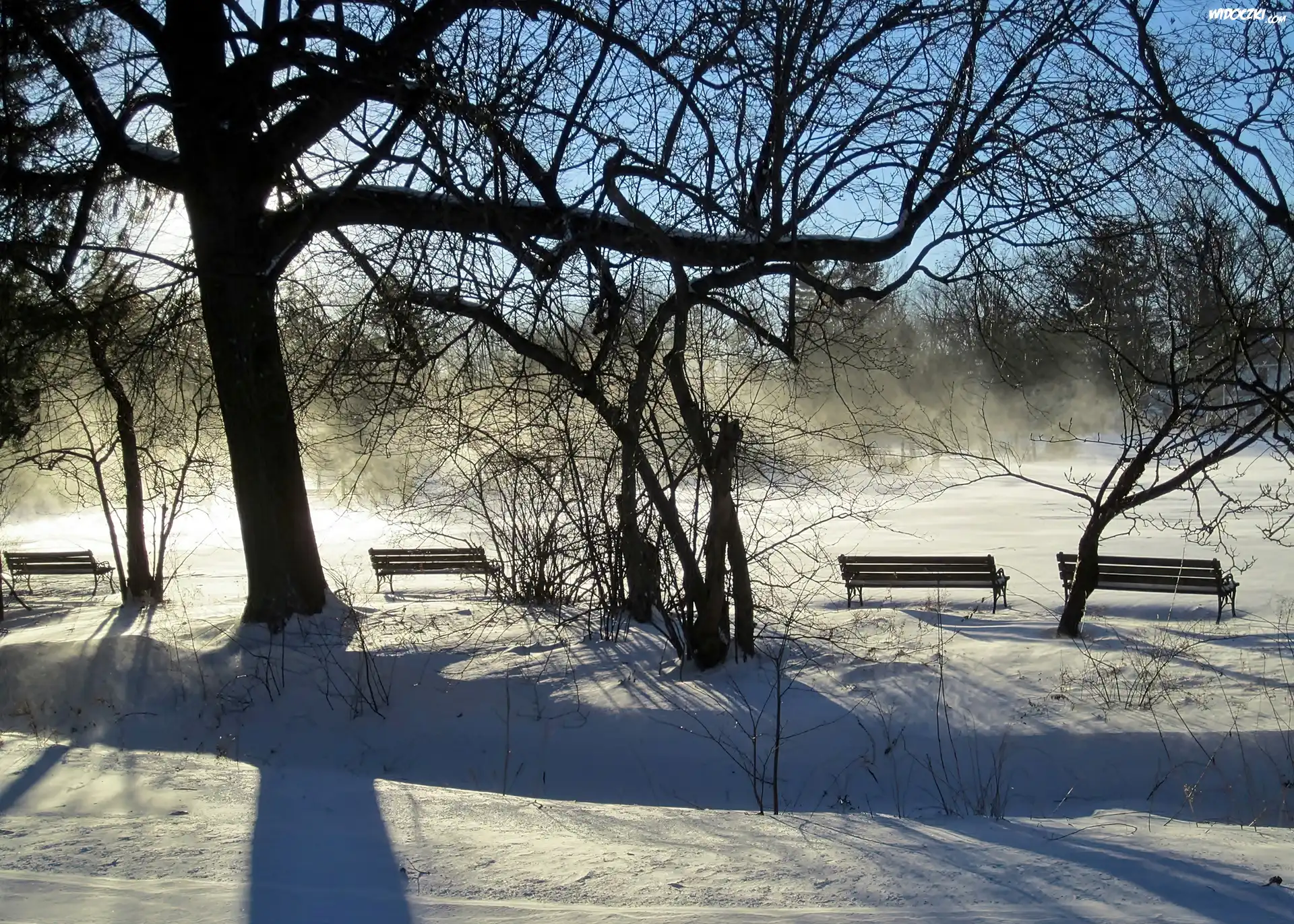 Park, Elizabeth, W Hartford, Zima, Mgła, Ławeczki