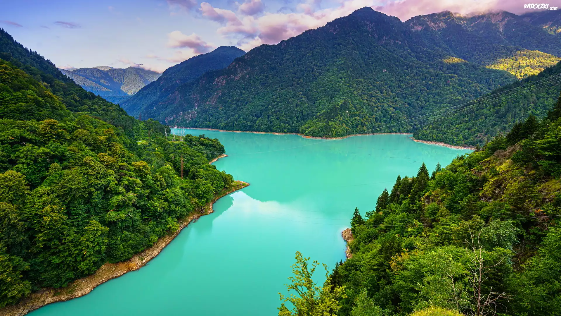Zdjęcia, Rzeka Enguri, Zbiornik, Góry Swaneckie, Lasy, Swanetia, Gruzja