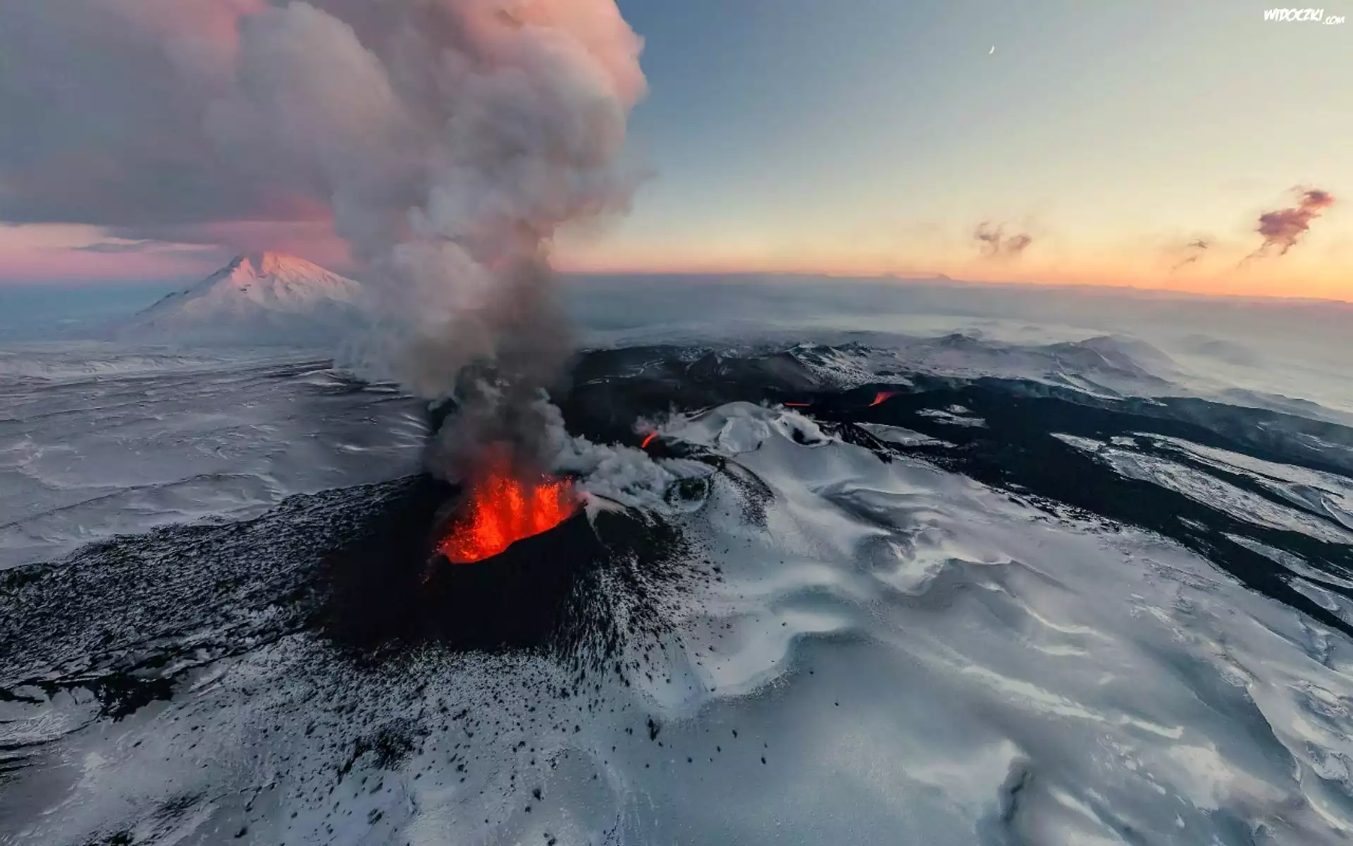 Zdjęcia, Rosja, Kamczatka, Stratowulkan Tołbaczik, Wulkan, Erupcja, Dym