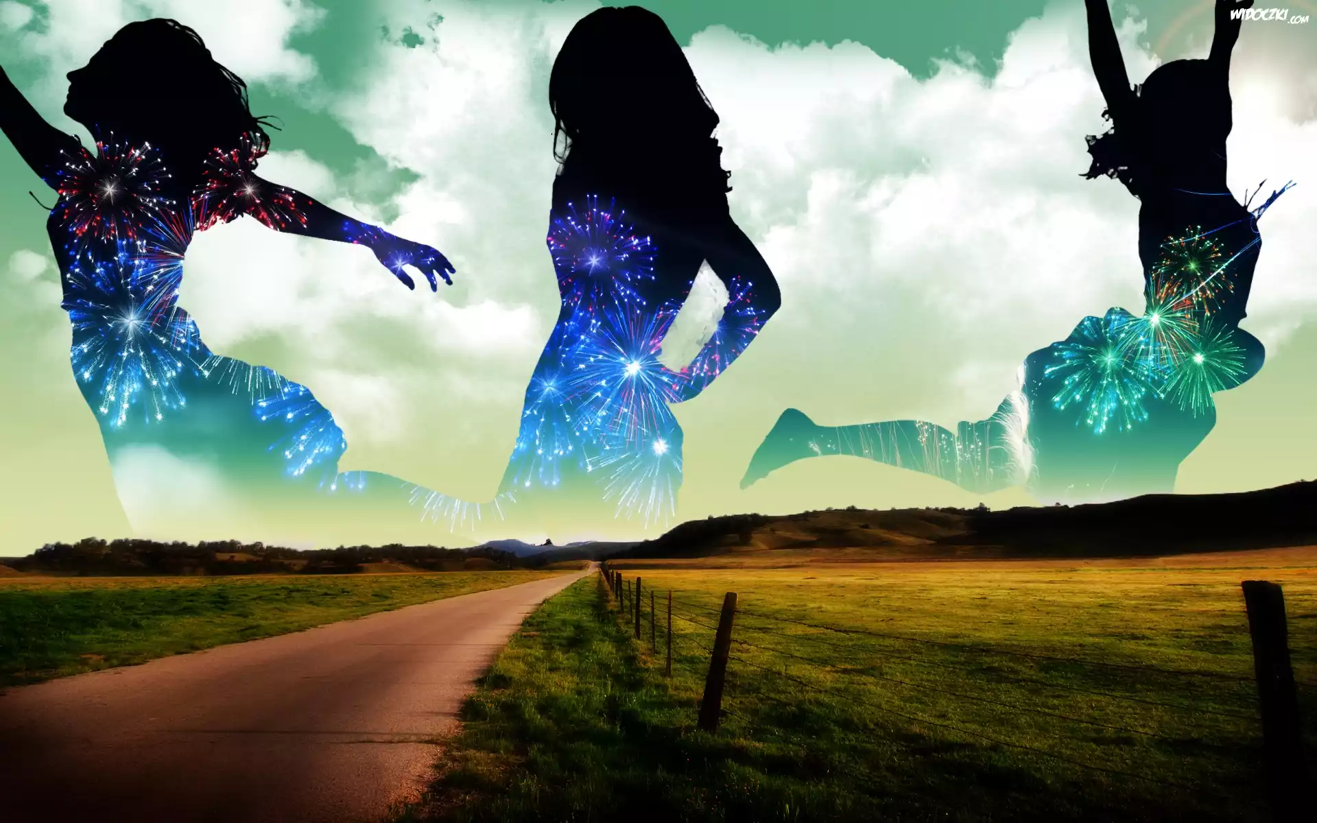 Zdjęcia, Kobiety, Fajerwerki, Droga
