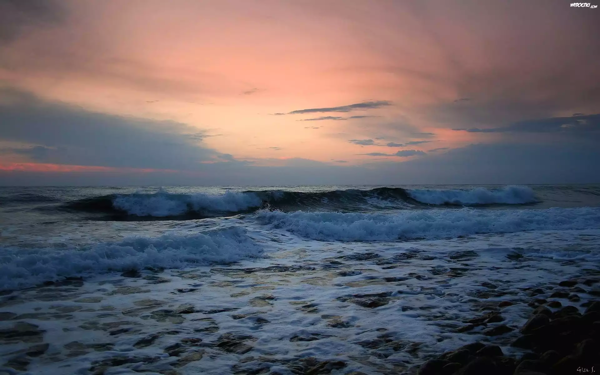 Zdj臋cia, Morze, Fale, Chmury