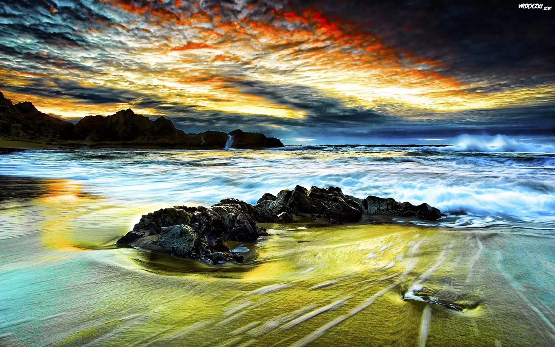 Morze, Fale Fale Góra, Chmury, Zachód, Słońca, Woda, Odbicie Spokojne Morze, Zachód Słońca Przejrzysta Woda, Fala, Niebo, Góra Kalifornia, Niebo, Chmura, Fale, Skała Surfing, Fale Morze, Zachód, Słońca, Zatoka Fale, Plaża, Zachód Słońca Słońce, Woda, Jezioro Windsurfing,żagiel Zachód, Słońca, Morze, Fale Fale, Morze, Miasto Chmury, Słońce