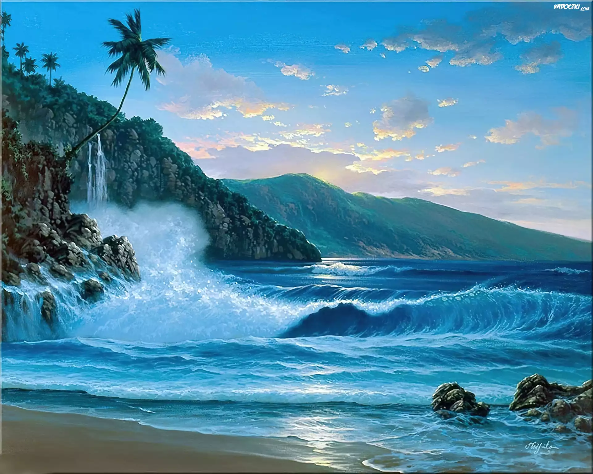 Kamienie, Morze, Fale Zachód Słońca, Zatoka, Łódki Latarnia, Morska, Falochron Morze, Skała Morze, Wzburzone, Fale, Bob Roos Fale, Plaża, Zachód Słońca Góra, Jeziora Plaża, Fale Góra Zachód Słońca, Chmura, Góra Żaglowiec, Przechył, Sztorm Kolorowe, Niebo, Chmury, Morze Dziwna Góra Góra