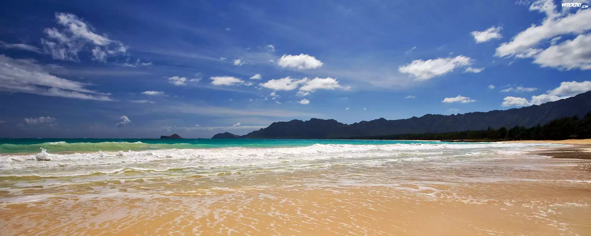 Zachód Słońca, Chmura, Mała Fala Tropiki, Plaża, Palmy Chmury, Morze, Plaża, Zachód, Słońca Fala Jezioro, Chmury, Zachód, Słońca, Odbicie Konie, Galop, Woda Morze, Skały, Plaża Morze, Góry, Chmury Plaża, Błękitne, Morze Samolot, Pasażerski, Chmura, Boeing 747 Plaża, Mostek Windsurfing,biała deska Zatoka, Drzewa Góra, Morze