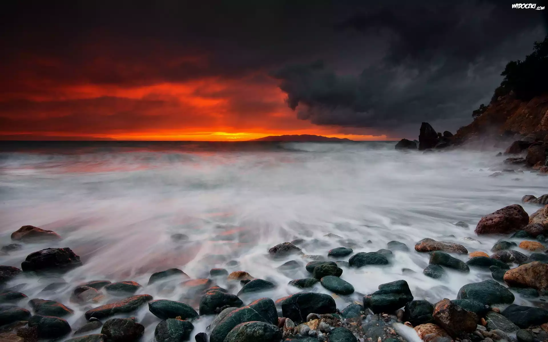 Zdjęcia, Fale, Kamienie, Morze, Zachód słońca