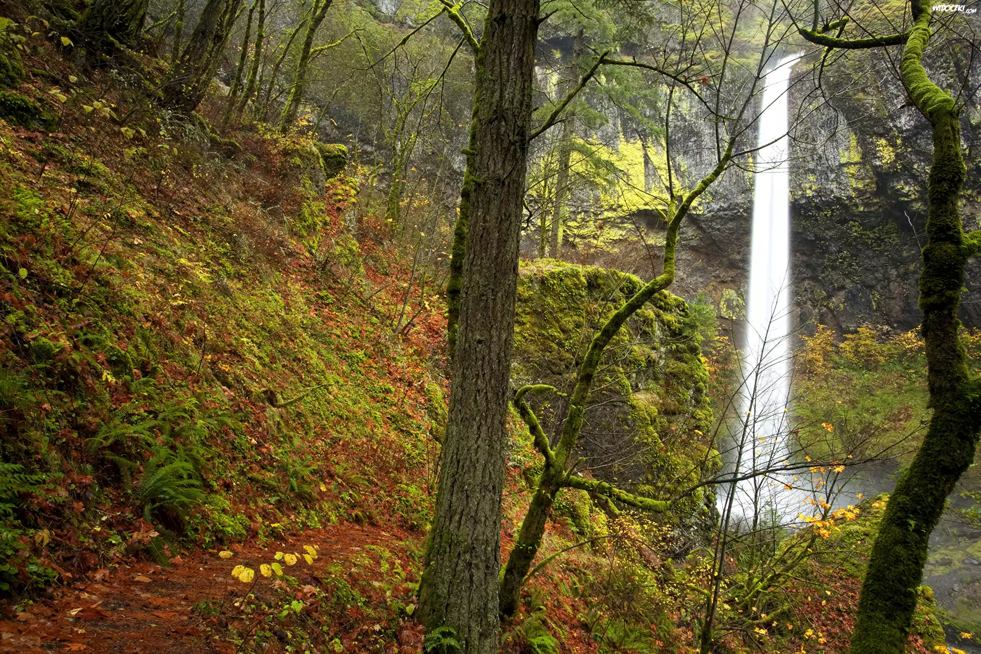 Zdjęcia, Stany Zjednoczone, Stan Oregon, Jesień, Las, Wodospad Elowah Falls