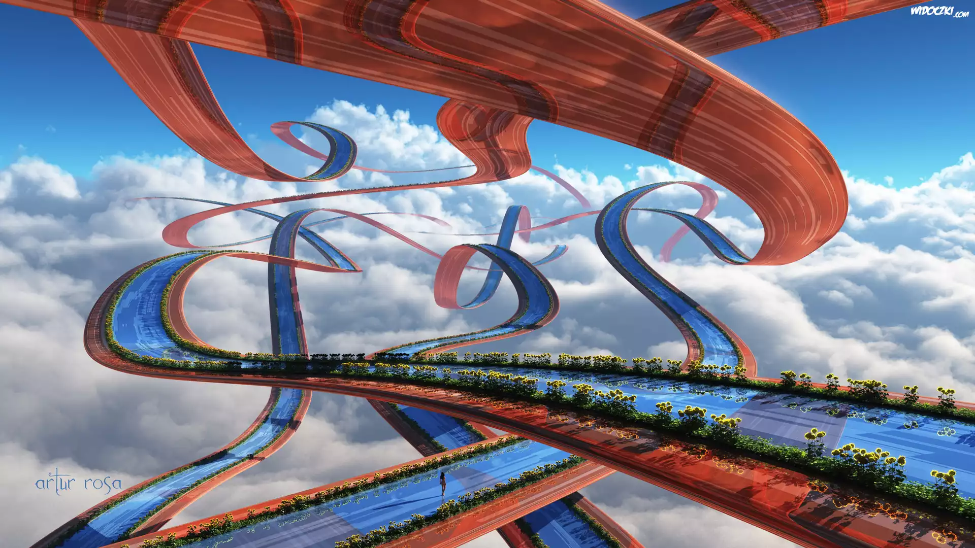 Zdj臋cia, Fantasy, Drogi, Chmury, Dziewczyna