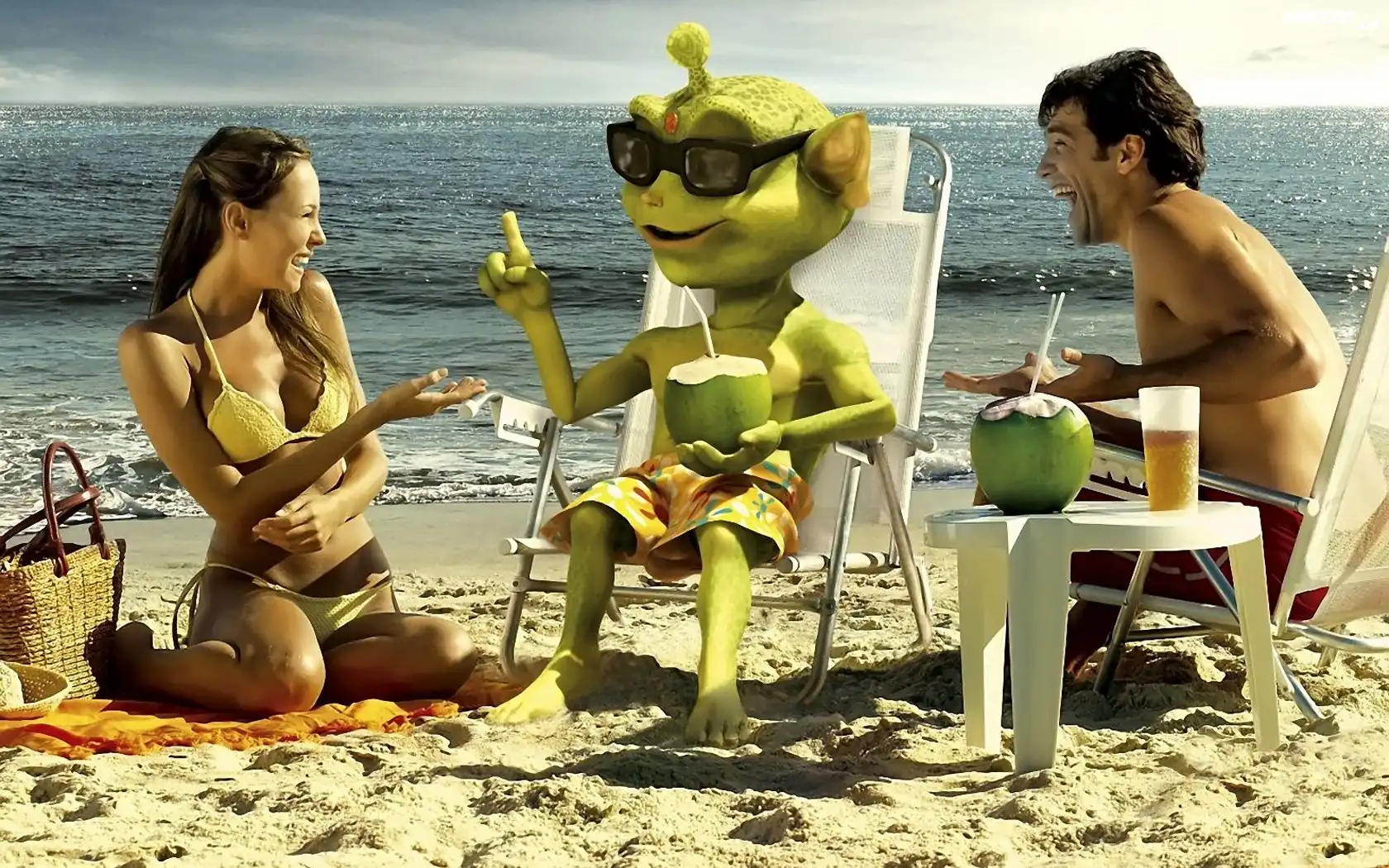 Fantasy, Morze, Plaża, Ludzie, Ufoludek