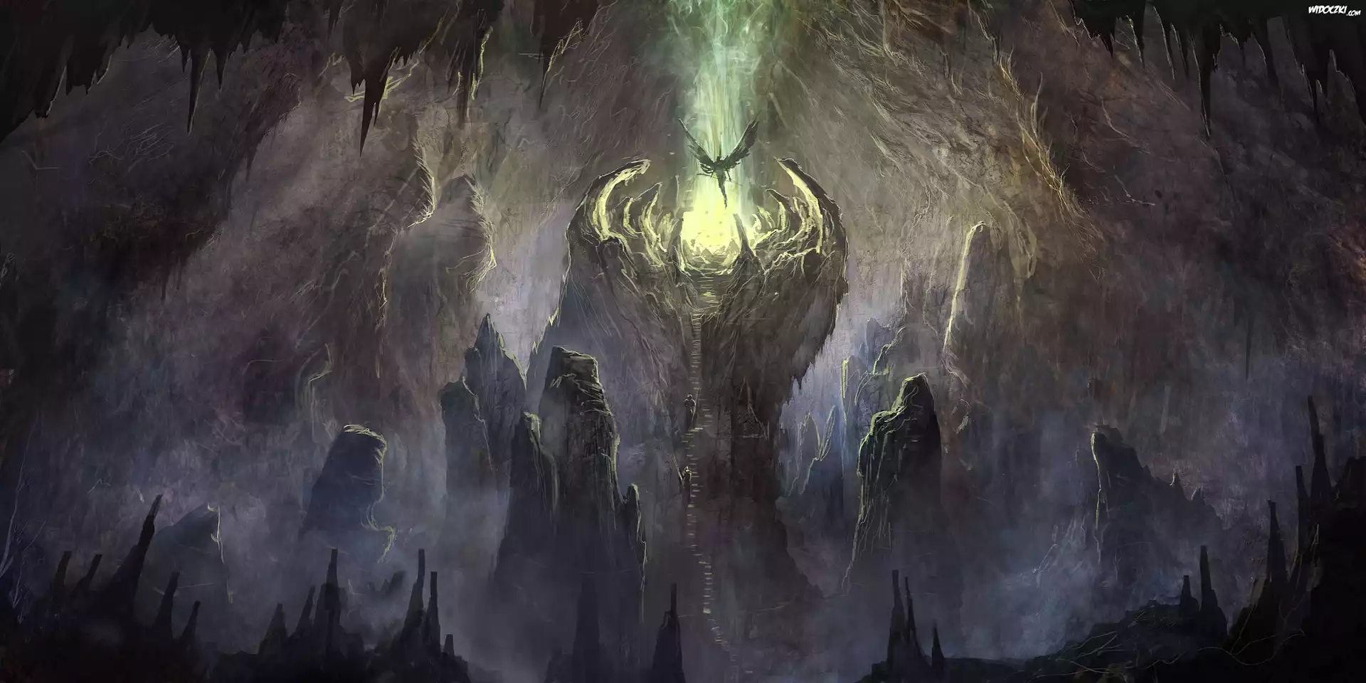 Fantasy, Jaskinia, Skały, Światło, Anioł