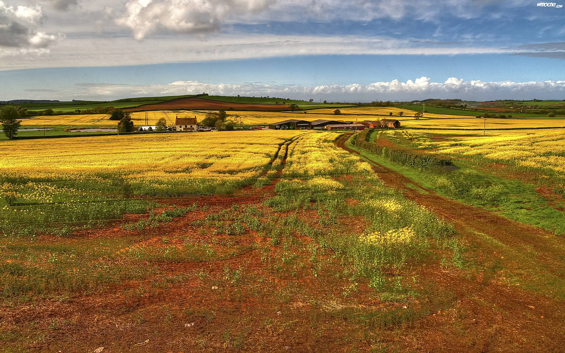 Zdjęcia, Farmy, Pola, Łąki, Droga, Rzepak