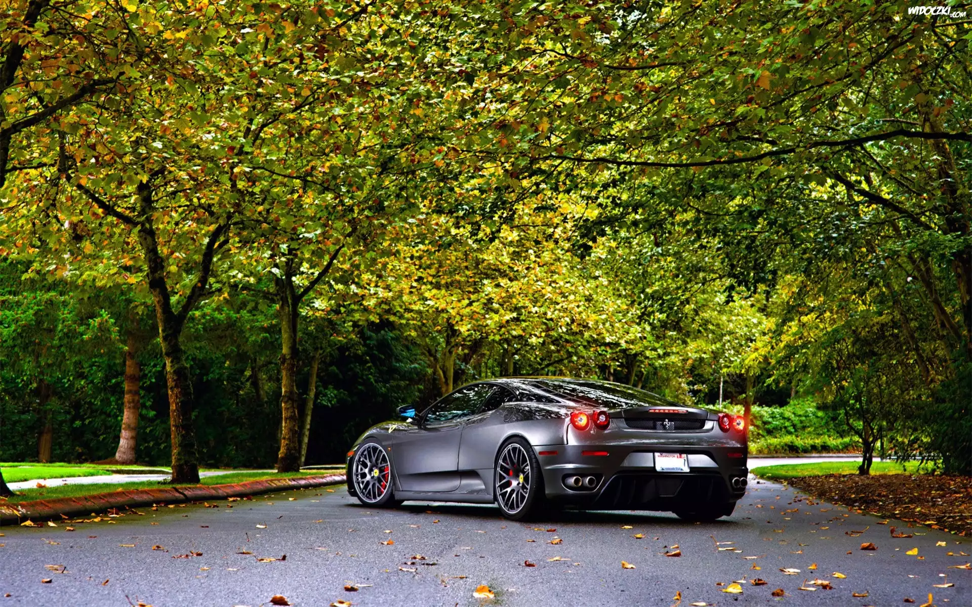 Zdjęcia, Ferrari, F430, Jesień, Droga, Drzewa