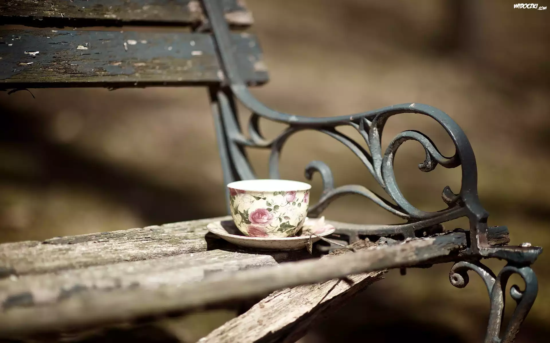 Zdjęcia, Filiżanka, Herbaty, Ławka, W, Parku
