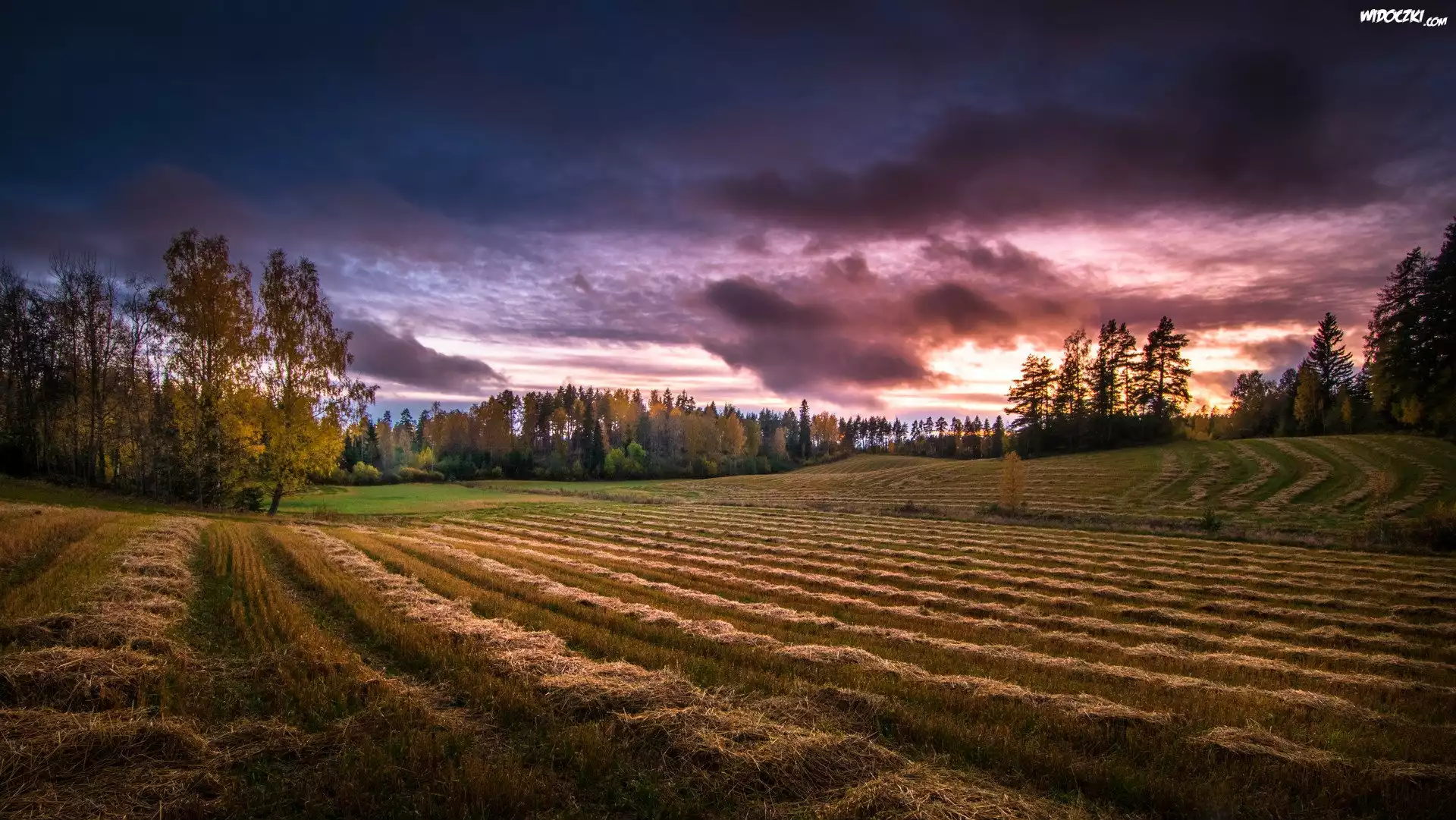 Zdj臋cia, Finlandia, Gmina Teisko, Pole, Chmury, Drzewa