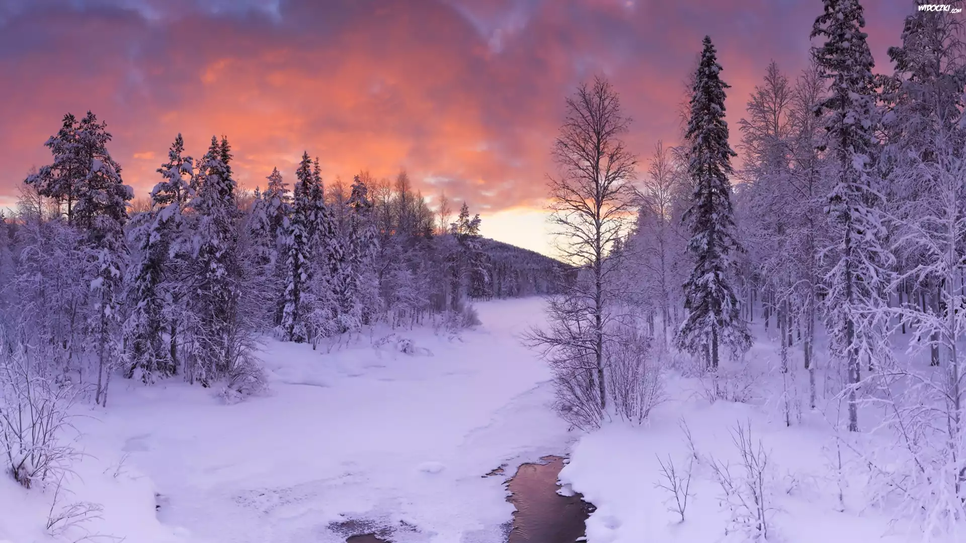 Zdjęcia, Finlandia, Laponia, Zima, Las, Rzeczka