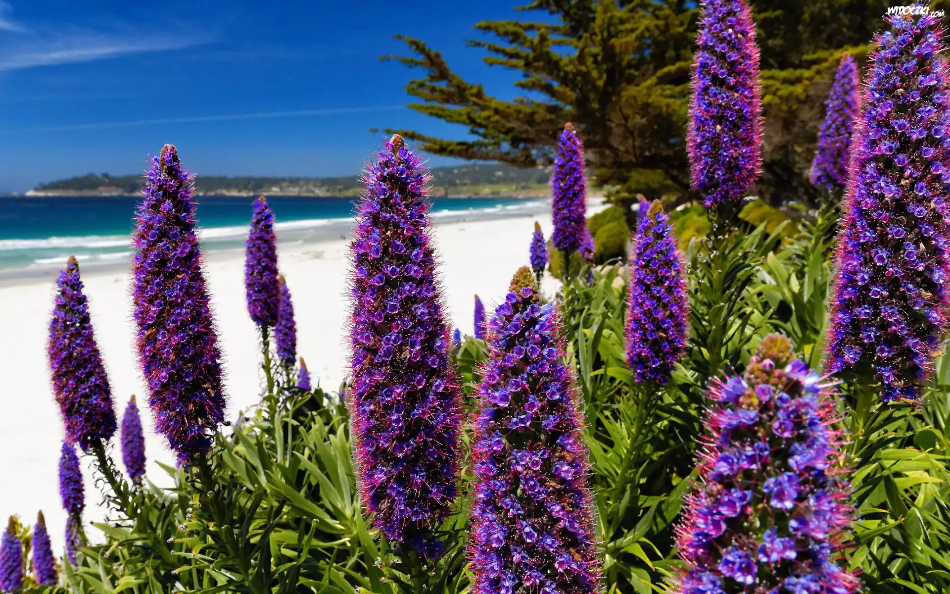 Fioletowe, Kwiaty, Budleja, Morze, Plaża