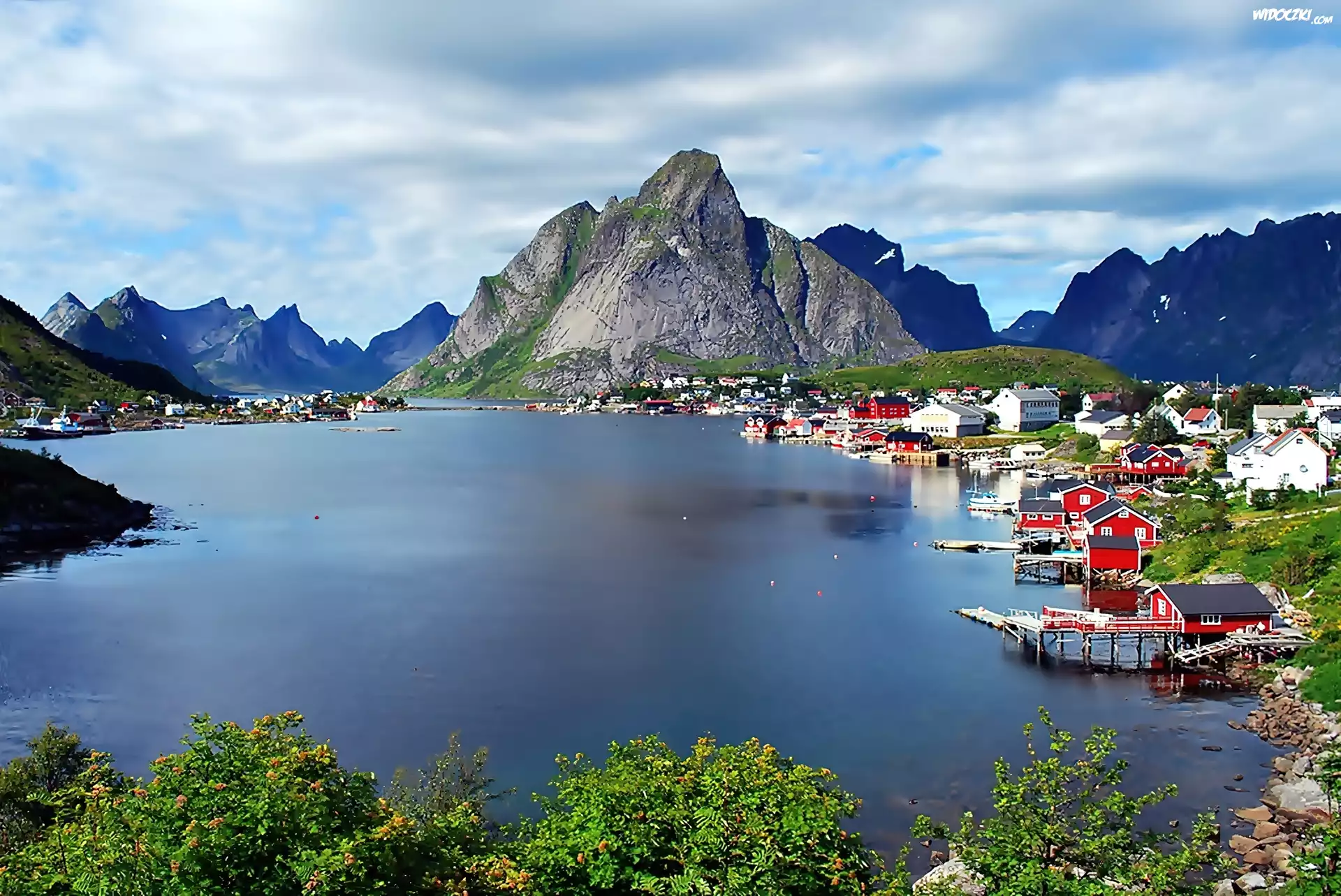 Zdjęcia, Norwegia, Lofoty, Wioska Reine, Góry, Jezioro