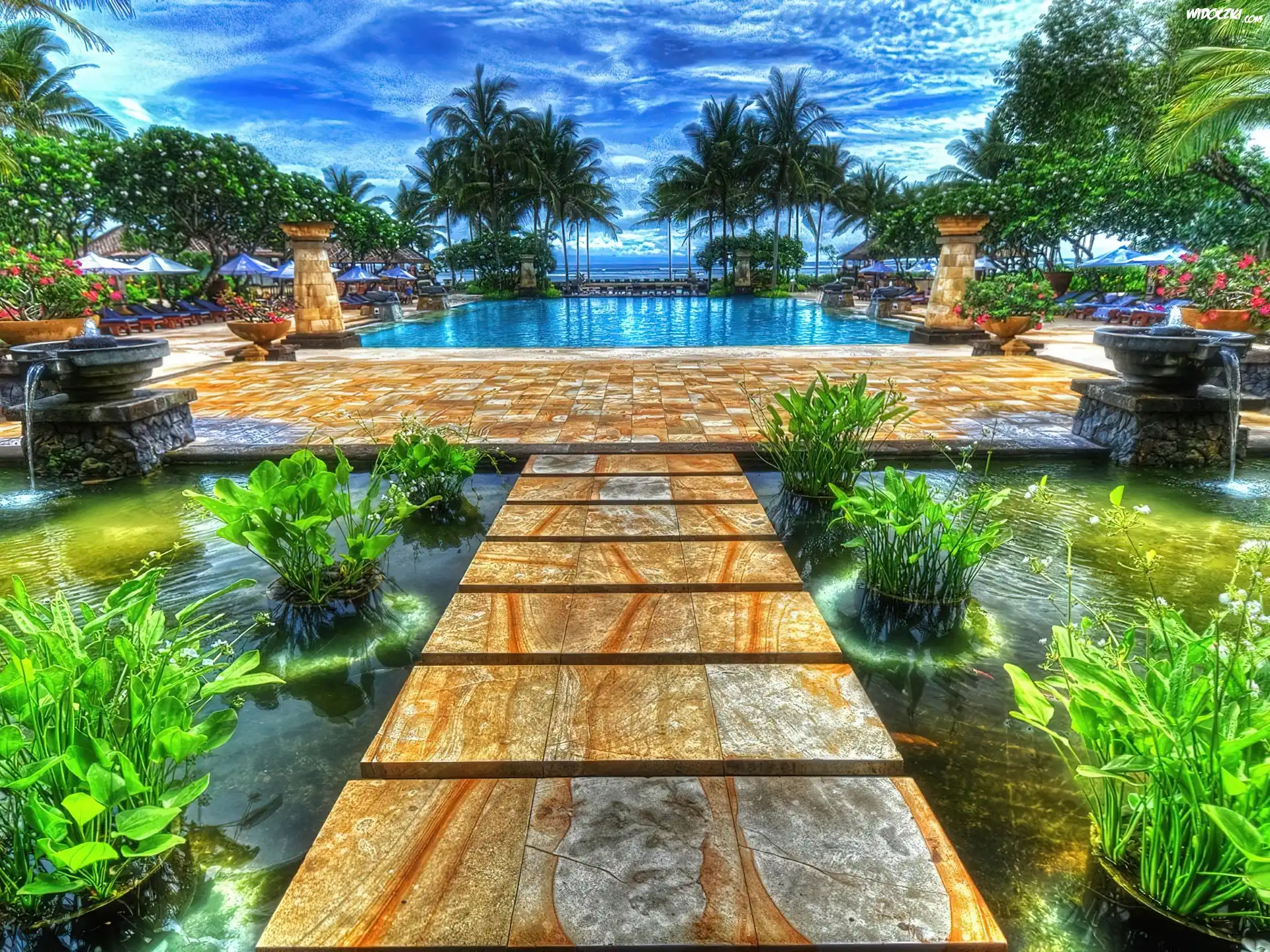 Zdjęcia, Basen, Fontanna, Roślinność