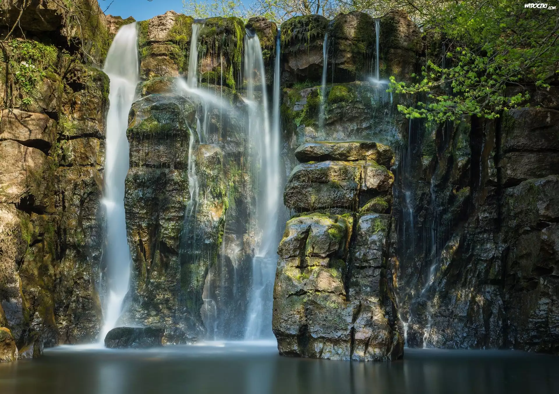 Kaskada, Wodna, Drzewa Jezioro, Wodospad, Góry Wodospad Wejście, Mury, Ogrodzenie, Zieleń Drzewa, Alejka, Park Góra, Wodospady, Paprocie Wodospad w lesie Jesień, Park, Ścieszka Kajakarstwo, Wodospad Central Park, Nowy York, Jesień Drzewa, Brzozy, Trawa, Ławeczki, Park Park, Zielone, Drzewa, Krzewy Wodospad Wodospad
