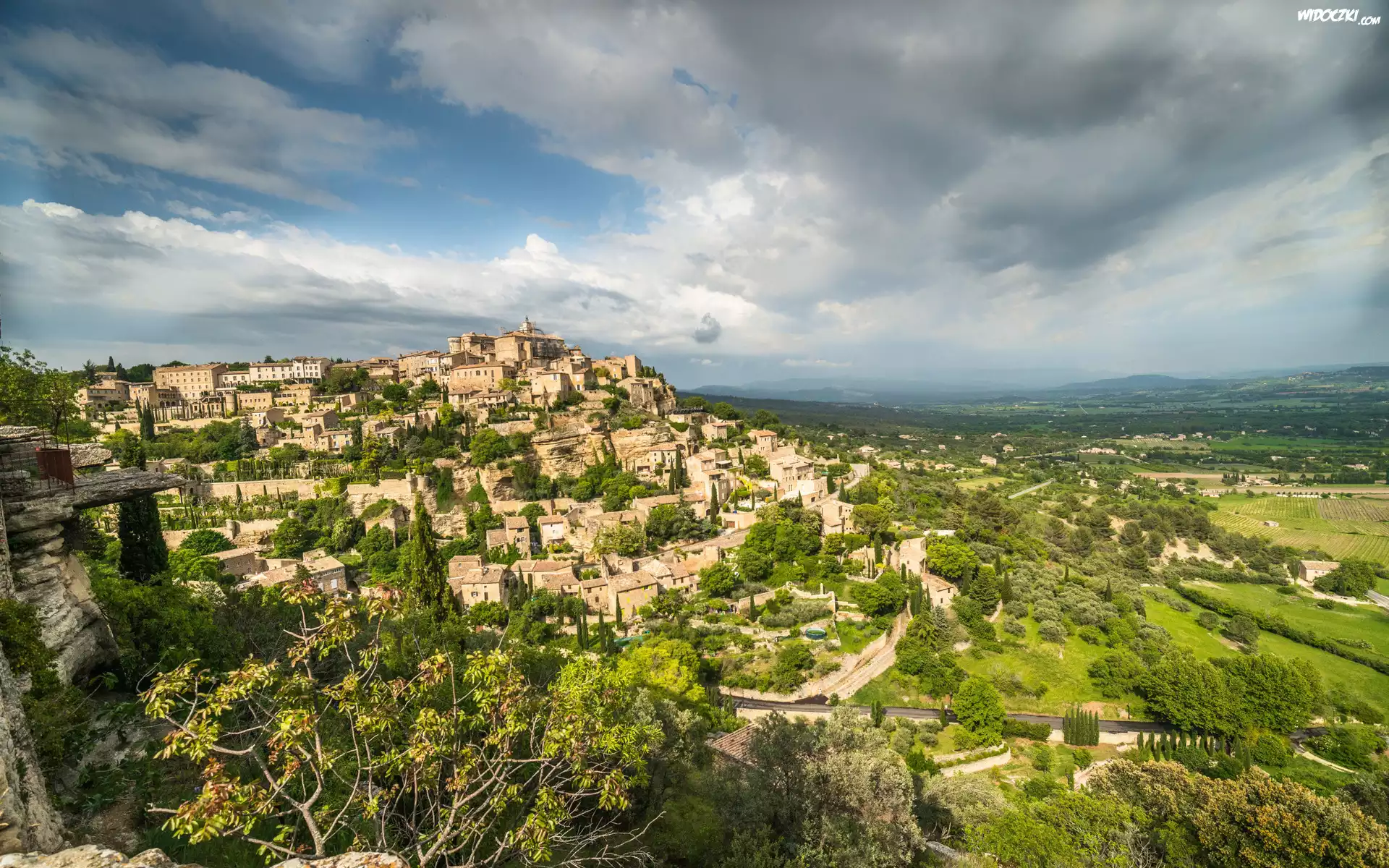 Zdjęcia, Francja, Prowansja, Gordes, Domy, Wzgórze