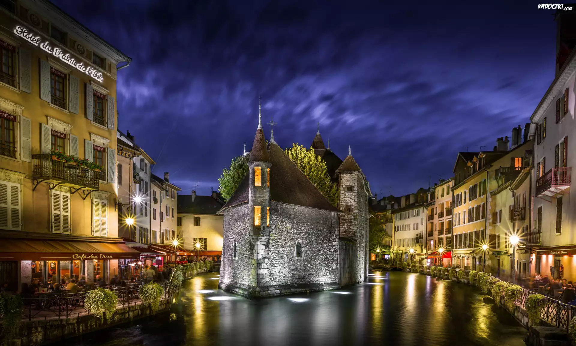 Francja, Region Owernia-Rodan-Alpy, Miejscowość Annecy, Muzeum Palais de lIsle, Rzeka Thiou, Kawiarenki, Domy |