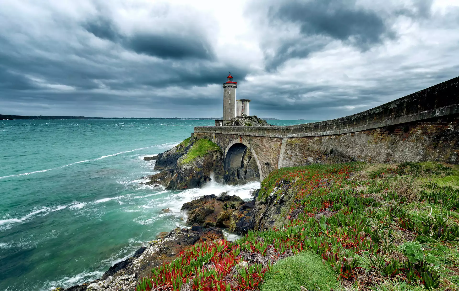 Francja, Bretania, Gmina Plouzané, Latarnia morska Phare du Petit Minou, Morze, Wybrzeże, Roślinność |