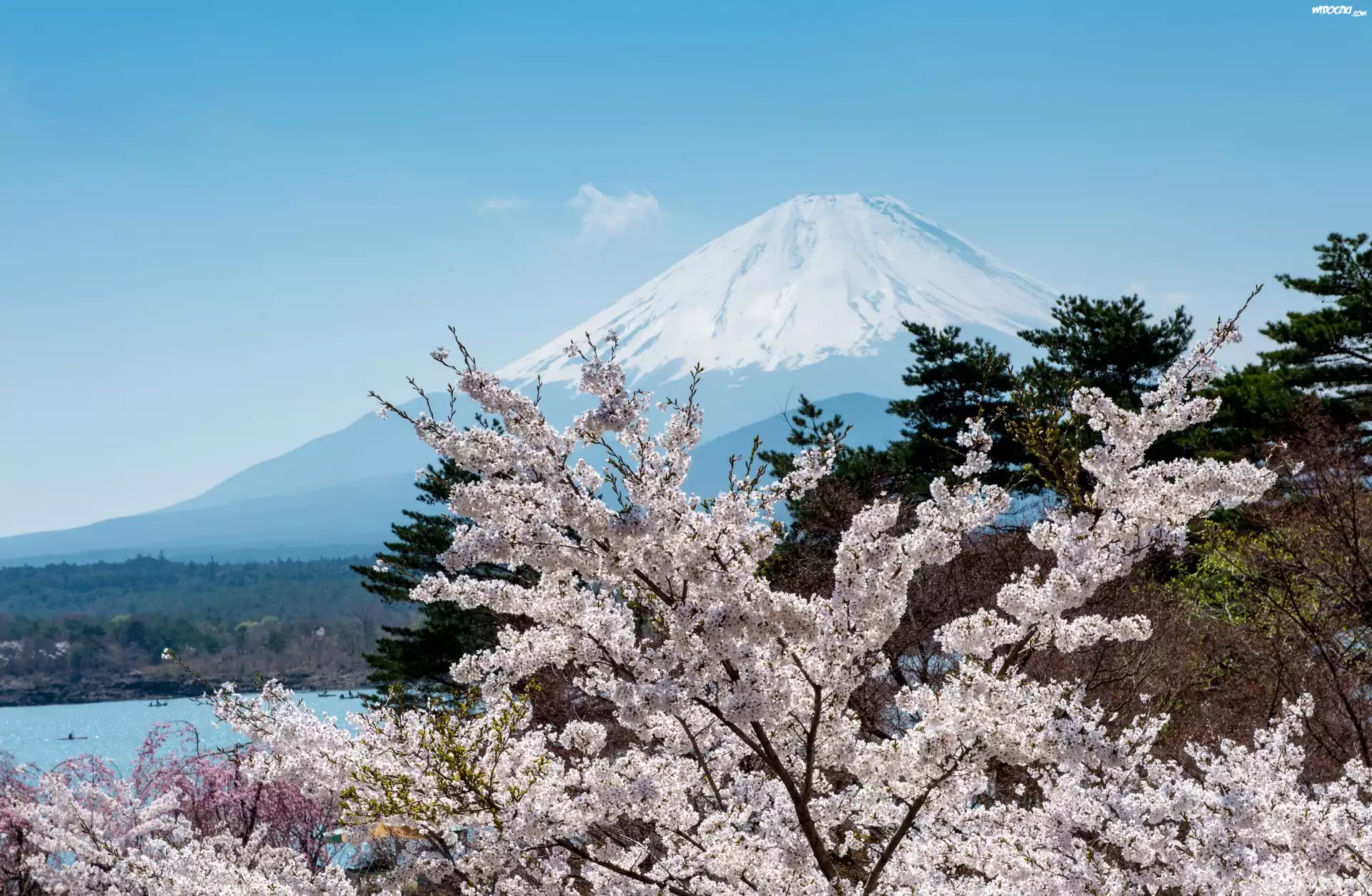 Fudżi, Kwitnące, Drzewa, Japonia, Wiosna