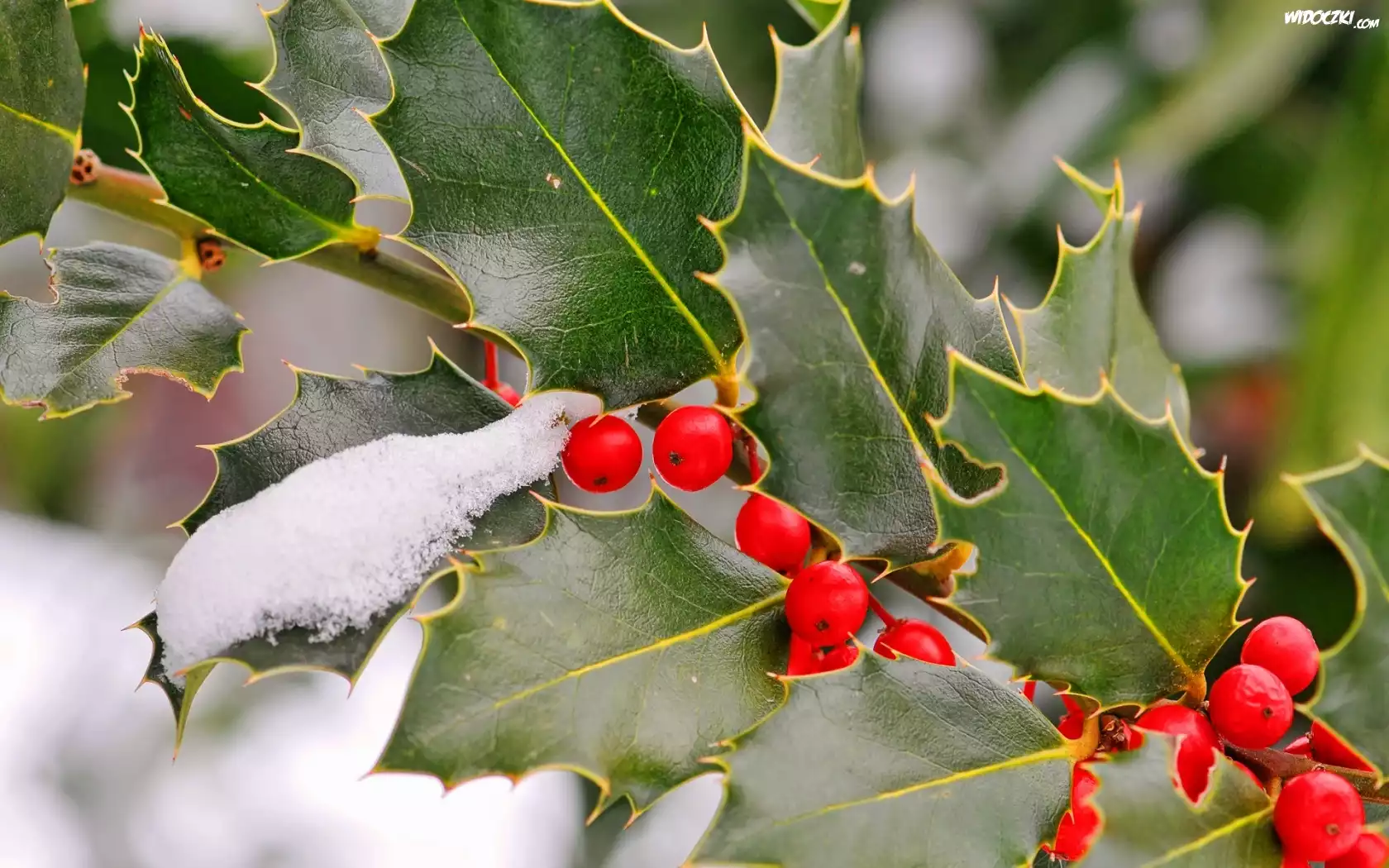 Zdjęcia, Zima, Gałązka, Kaliny, Czerwone, Jagody, Liście, Śnieg