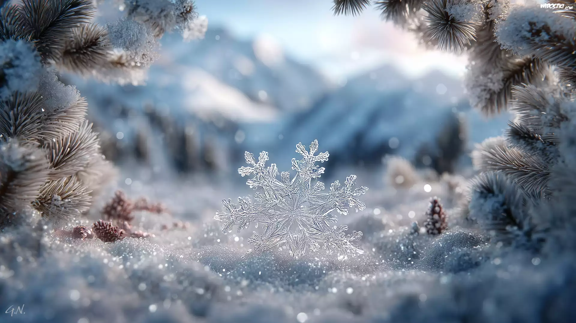 Zdjęcia, Śnieżynka, Śnieg, Oszronione, Gałązki, Grafika AI