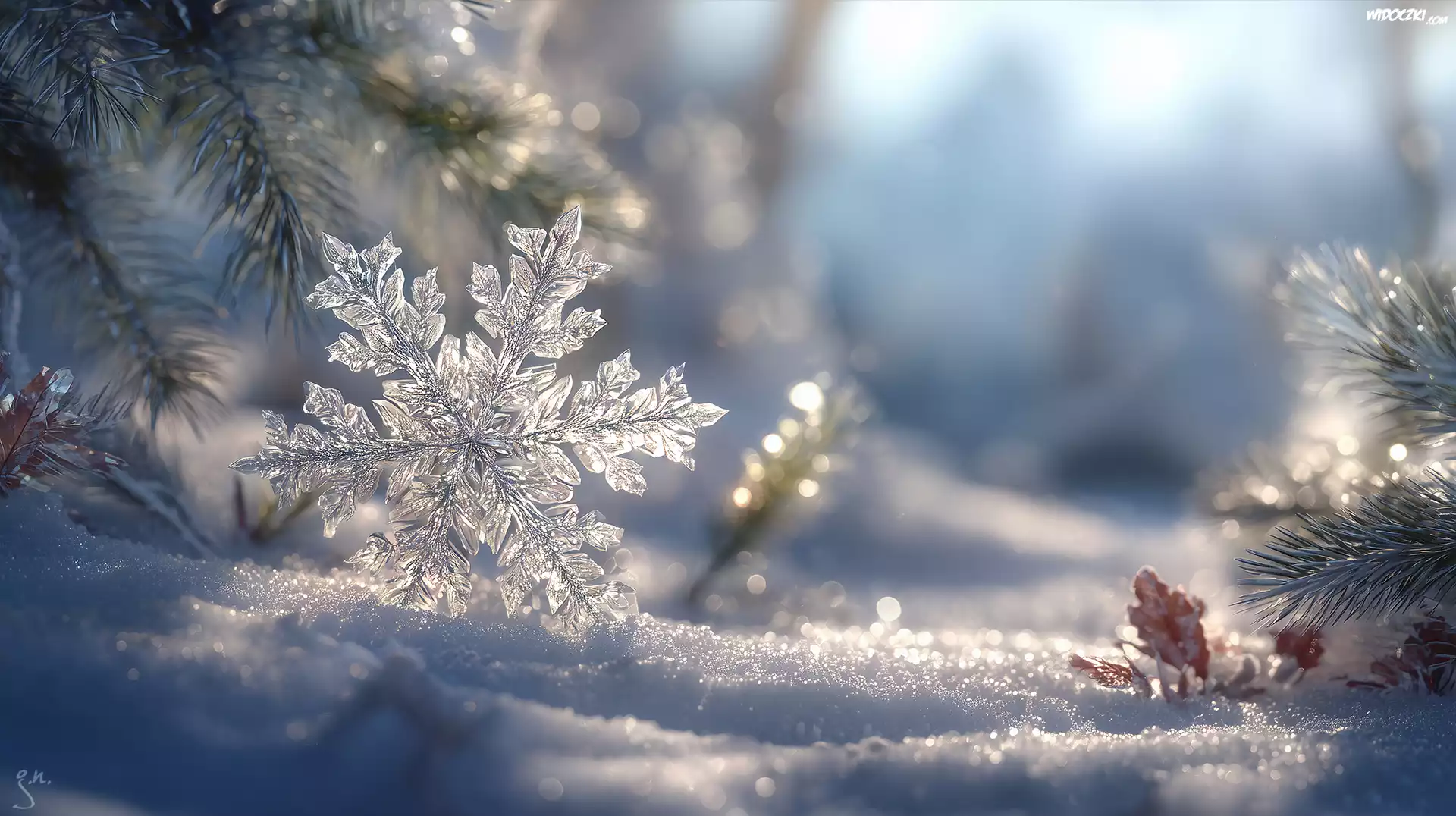 Zdjęcia, Śnieżynka, Śnieg, Zima, Gałązki, Grafika AI