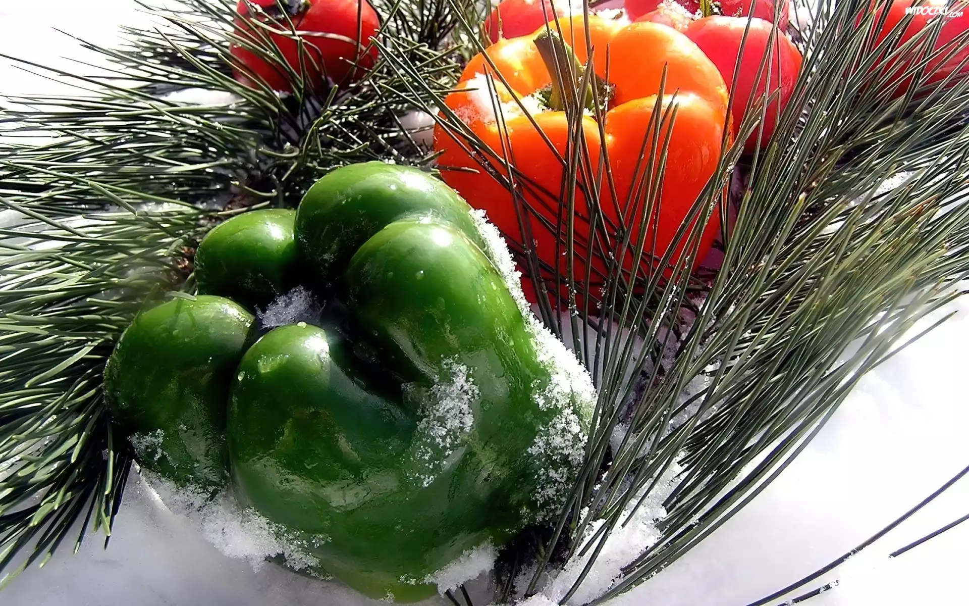 Zdjęcia, Śnieg, Papryka, Gałązki, Sosny