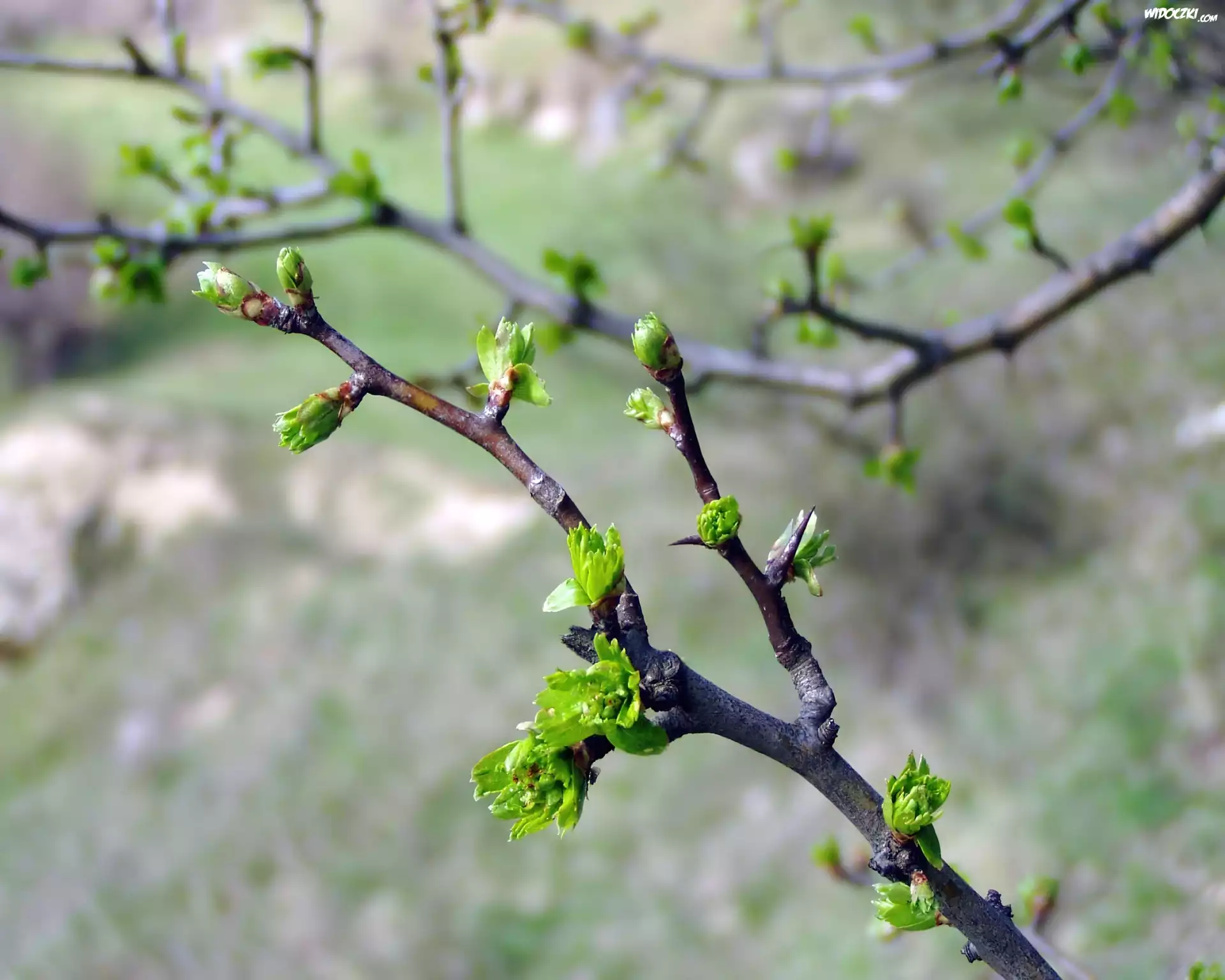 Zdjęcia, Gałązki, Pąki, Zielone, Listki