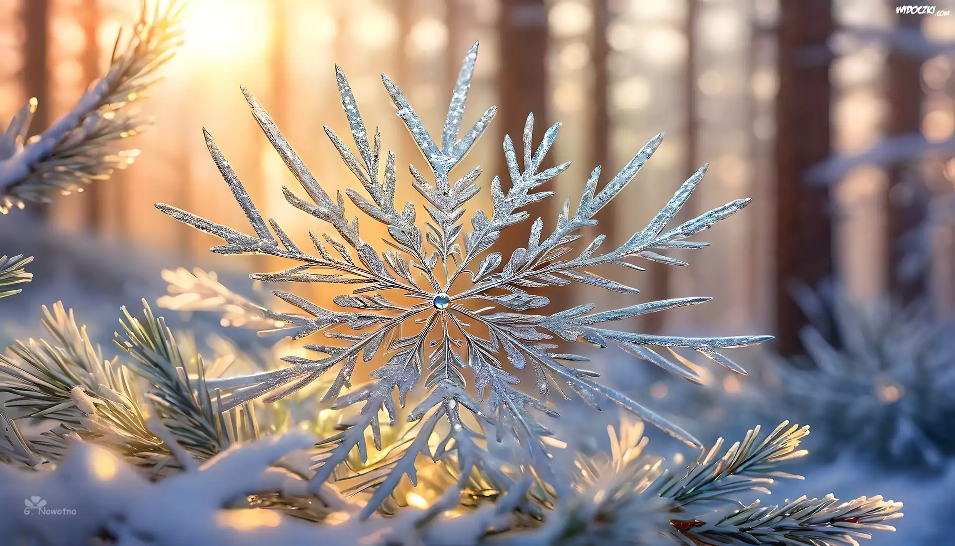 Zdjęcia, Śnieżynka, Gałązki, Zima, Śnieg, Grafika
