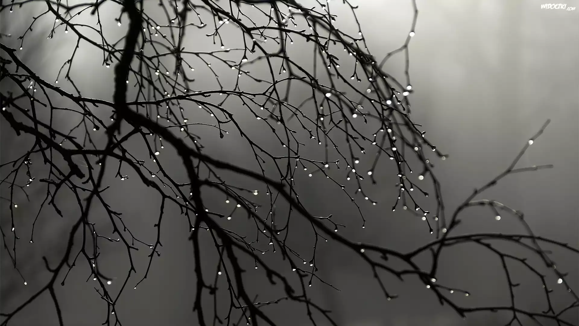 Zdjęcia, Gałęzie, Drzewa, Mgła, Krople, Deszczu