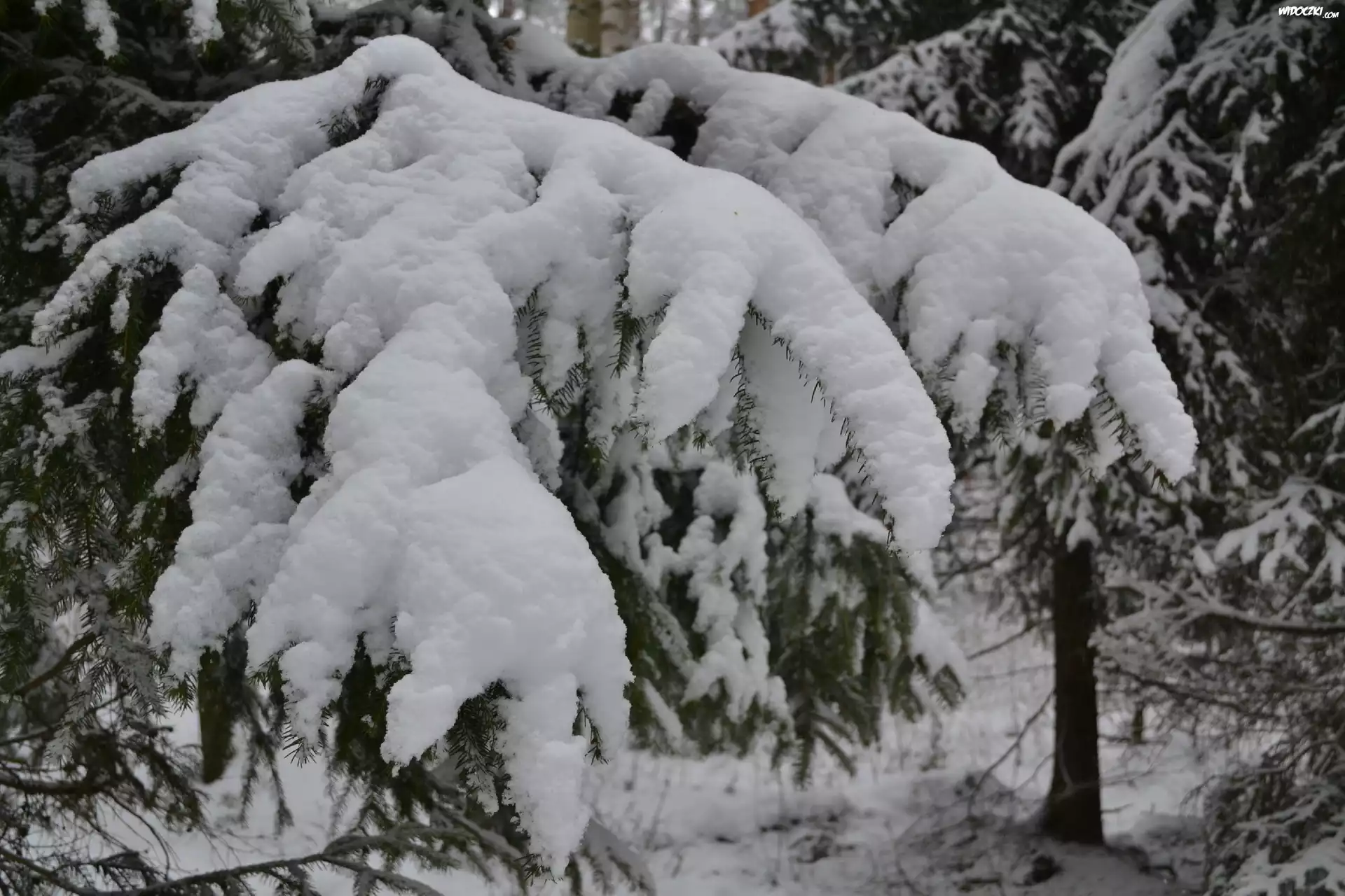 Ośnieżone, Gałęzie, Świerku