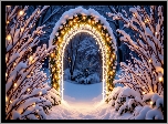 Zdjęcia, Zima, Drzewa, Ośnieżone, Gałęzie, Łuk, Oświetlony