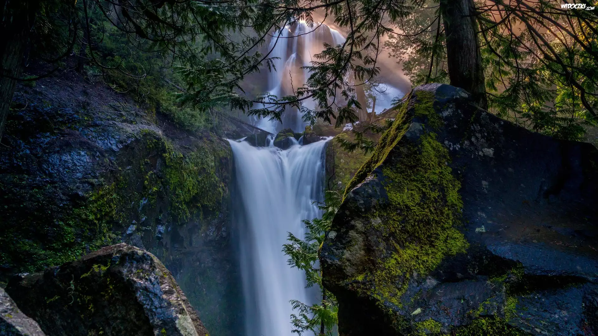 Zdjęcia, Skały, Wodospad, Drzewo, Gałęzie