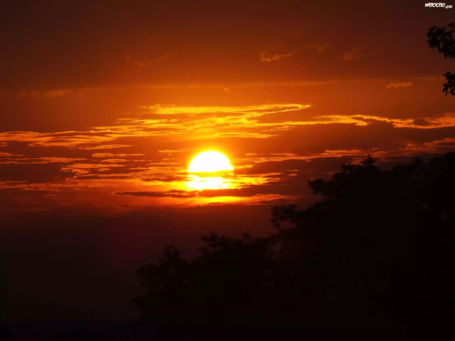 Zdjęcia, Gałęzie, Drzew, Zachód, Słońca
