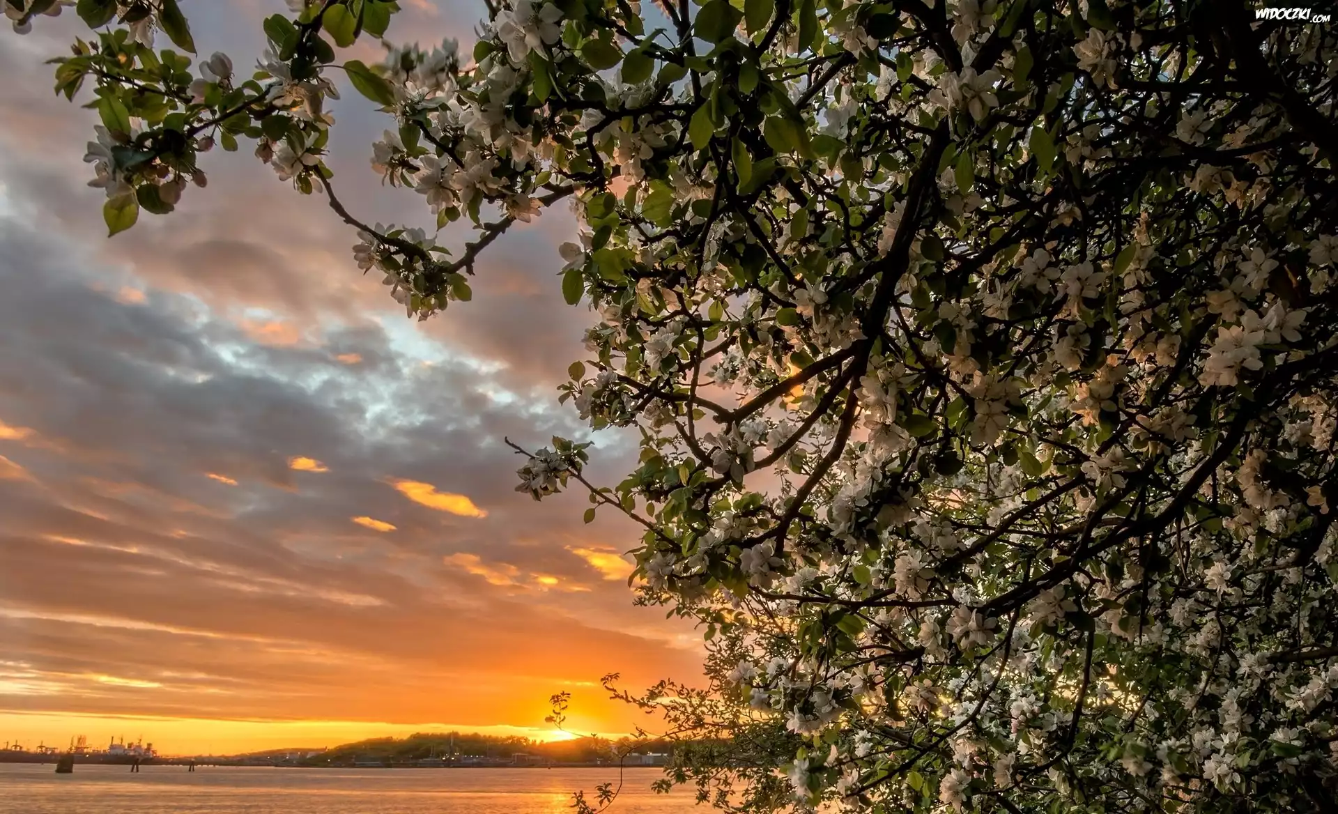 Zdjęcia, Gałęzie, Drzewa, Zachód, Słońca