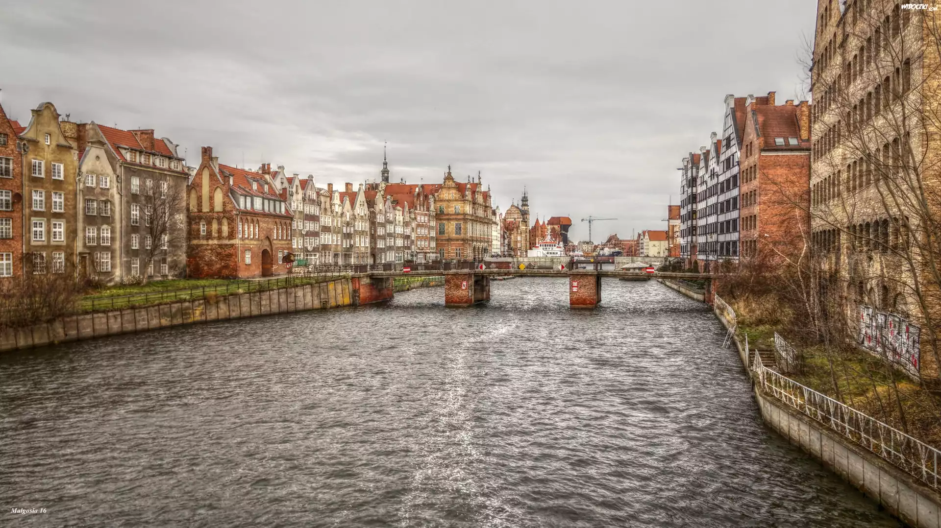 Zdjęcia, Gdańsk, Rzeka, Kamienice, HDR